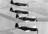Powojenny treningowy lot samolotów 309 Dywizjonu. Wśród lecących maszyn widać Mustanga III ŻW (FB217) przydzielonego do osobistego użytku dowódcy 133 Skrzydła Myśliwskiego mjr. Waleriana Żaka.