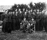 Grupowa fotografia personelu 309 Dywizjonu wykonana w w dniu zmiany dowódcy jednostki. Siedzą kpt. Henryk Pietrzak (z lewej, nowy dowódca) i kpt. Antoni Głowacki (z prawej, poprzedni dowódca). Na górze od lewej stoją: sierż. pchor. Edward Hanka, por. Włodzimierz Klawe, por. Tadeusz Haczkiewicz, sierż. Stanisław Kogut, por. Sergiusz Czerni, plut. Tadeusz Wiśniewski, sierż. Erwin Loska, nierozpoznany (z tyłu), plut. Egon Eisenbach, nierozpoznany (z tyłu), plut. Roman Godlewski, nierozpoznany (z tyłu), ppor. Stanisław Zaufal, nierozpoznany (z tyłu), por. Jan Mozołowski, por. Stanisław Birtus, st. sierż. Antoni Murkowski, nierozpoznany (z tyłu), por. Tadeusz Turek, trzech nierozpoznanych. Andrews Field, 16 lipca 1945 r.