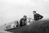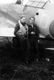 St. sierż. Antoni Murkowski (z lewej) oraz ppor. Zygmunt Jaeschke z 309 Dywizjonu przed łącznikowym Austerem, którym co niedzielę kapelan 133 Skrzydła Myśliwskiego wożony był na msze do innych baz RAF. Samolot pilotowali zwykle Jaeschke i por. Kazimierz Zielonka.