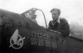 St. sierż. Antoni Murkowski w kabinie swojego Mustanga III WC-W (FB385) z godłem dywizjonu oraz oznaczeniami zestrzeleń niemieckich samolotów oraz latających bomb V1.