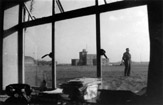 Widok na wieżę kontroli lotów ostatniego lotniska 309 Dywizjonu przez okno jednego z zabudowań. Coltishall, 1945-1946 r.