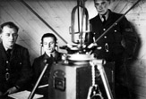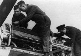 Personel naziemny przy sprzęcie radiowym - pierwszy z prawej oficer łączności kpr. pchor. Józef Krzywonos (uczeń ostatniego przedwojennego rocznika Szkoły Podchorążych Lotnictwa - Grupy Technicznej).