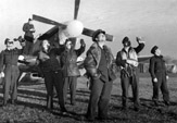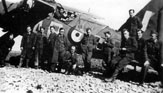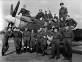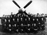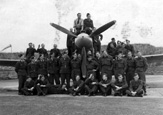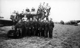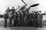 Personel 309 Dywizjonu w towarzystwie dowódcy kpt. Jerzego Gołki (stoi na lewo od dolnej łopaty śmigła). Wrzesień 1944 r.