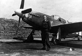 Kpt. Jerzy Mencel na skrzydle Mustanga III WC-F (KH516), którego pilotując 9 kwietnia 1945 r. zestrzelił odrzutowego Messerschmitta 262.