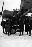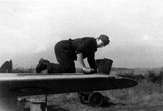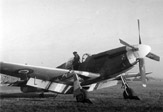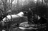Rozbity po awarii silnika i przymusowym lądowaniu Mustang III WC-H (KH484) plut. Tadeusza Wiśniewskiego 16 stycznia 1946 r. Na skrzydle stoi sam pilot - cały i zdrowy.