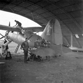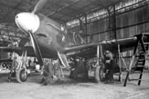 Inne ujęcie żołnierza personelu naziemnego czyszczącego końcówkę skrzydła Hurricane'a IIC. Kwiecień-wrzesień 1944 r.