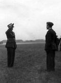 Przywitanie Naczelnego Wodza gen. Kazimierza Sosnkowskiego przez dowódcę 309 Dywizjonu mjr. pil. Witolda Jacka Piotrowskiego. Snailwell, 11 października 1943 r.