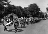 Po uroczystościach kościelnych uformował się kondukt pogrzebowy. Na czele wszystkich delegacji wojskowych kroczyła delegacja 1 dywizji pancernej. Podhalanie szli w czołówce. Ich to bowiem sztandar był pierwszym sztandarem udekorowanym na obczyźnie przez generała Sikorskiego Orderem Virtuti Militari za walki pod Narwikiem. Delegację prowadził ówczesny dowódca brygady pancernej pułkownik dyplomowany Tadeusz Majewski. Z tyłu, przy sztandarze Podhalan, kroczyłem ja.